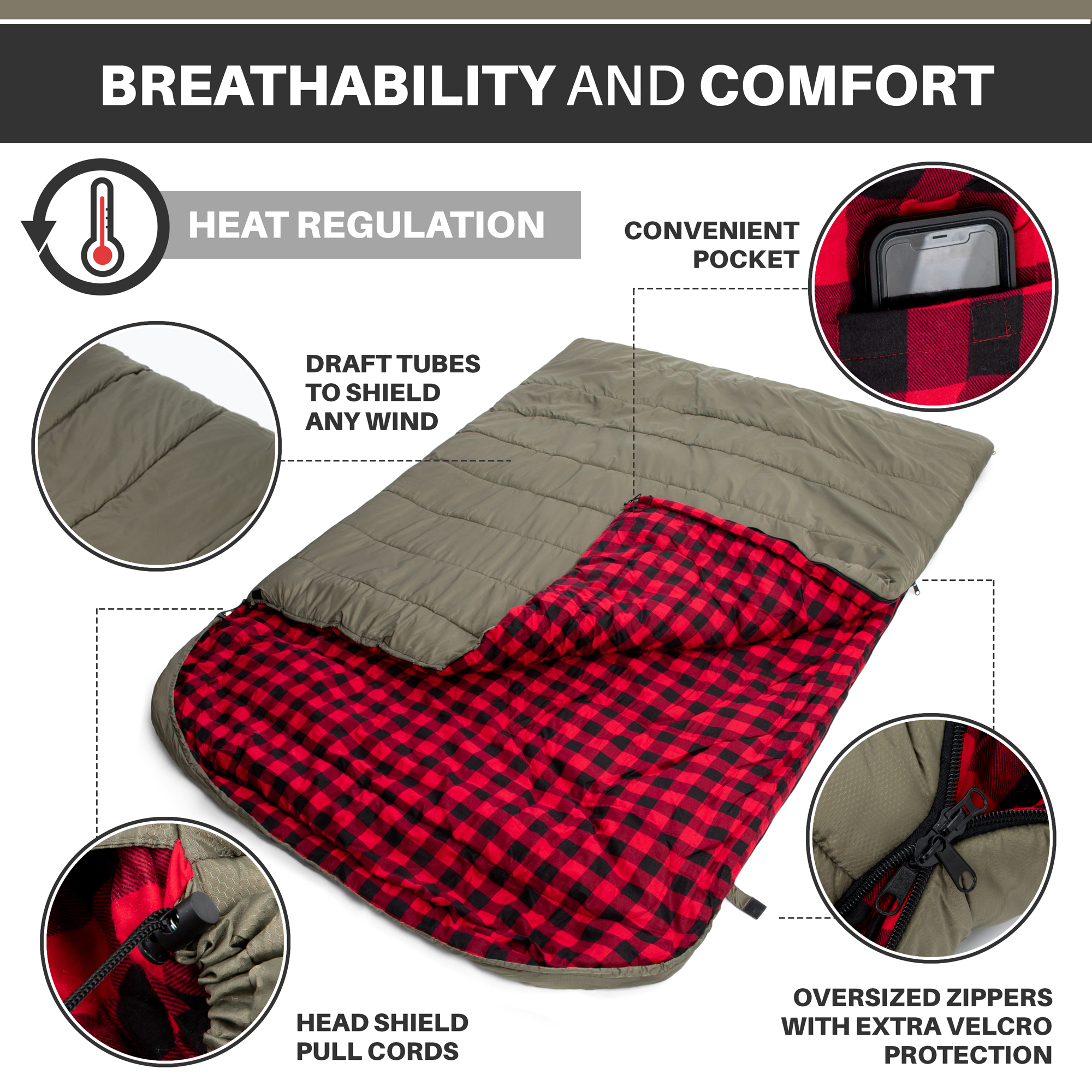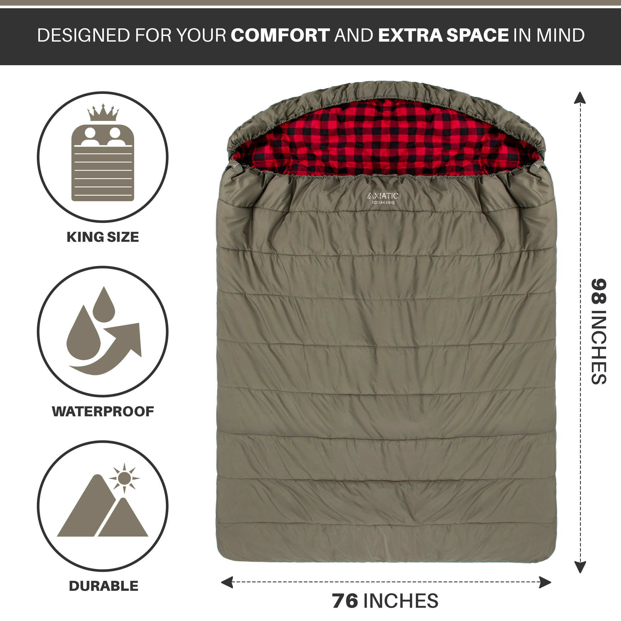 AXIATIC Kodiak King 20f King Size Oversize 2 Person Cold Weather Double Sleeping Bag