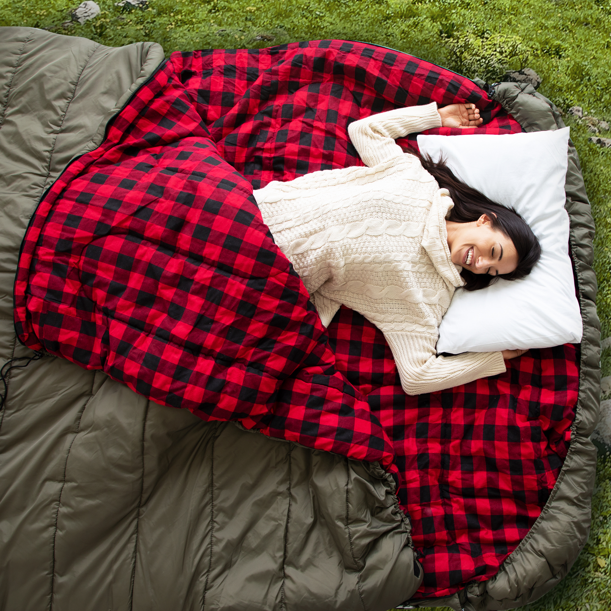 ✔SLEEP LIKE A KING- larger than a true KING size with 76” x 98” (195 x 250cm) of space, its oversized length is perfect for tall people and couples. Liberate your legs, with its king size width, your legs wont feel constricted like a mummy or smaller sleeping bag.